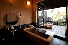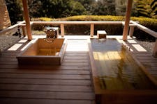 約2,000坪の広大な敷地に全7室のお部屋。天然温泉の露天風呂を備えた純和室の離れで、ゆったりくつろぎの休日をお過ごしいただけます。敷地内の庭園は自慢のひとつ。四季折々の庭木が楽しめるだけでなく、春になれば竹林の筍がメニューに加わるなど、旬の食材と風景を楽しみながらお部屋で愛犬とともに会席料理をご堪能いただけます。